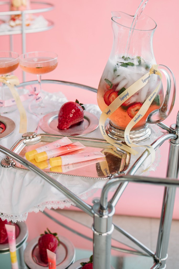 Good Girls Event brought a taste of Paris to a private suite with a playful, vintage-inspired room service concept for Supergoop! and Sephora. With delicate ribboned carts, strawberry spritz cakes, and minty jelly delights, the space transformed into a dreamy patisserie-meets-beauty lounge. Every dessert was styled to echo the hues and spirit of the new lip gloss collection — making it a true feast for all senses.